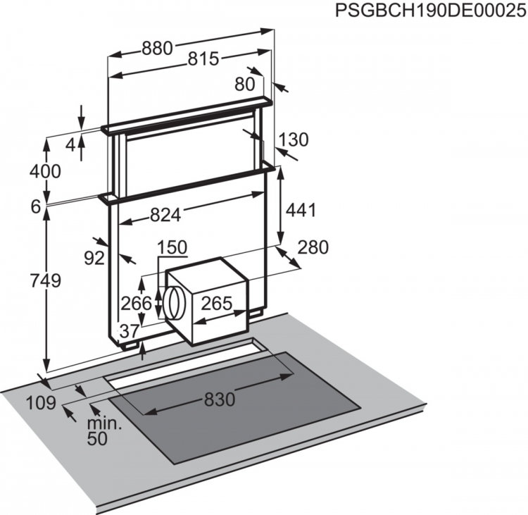 | Typ odsavače | Podvěsný, šířka 90 cm |