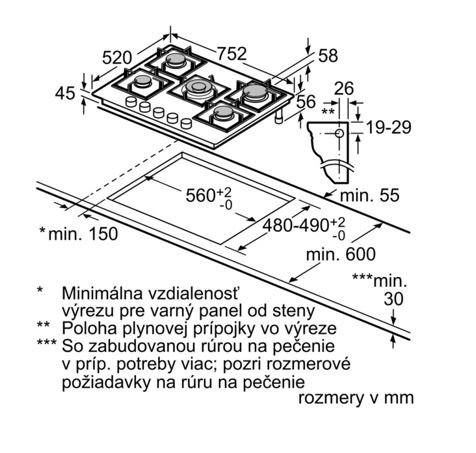 rozměry spotřebiče (V x Š x H): 58 x 752 x 520 mm