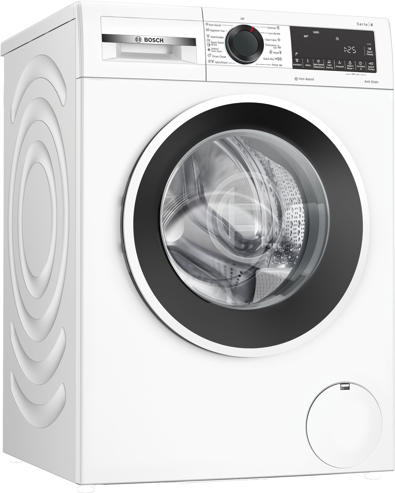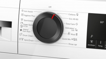 speciální programy: čištění bubnu s funkcí připomenutí, Iron Assist, Hygiena Plus, džíny/tmavé prádlo, odstřeďování/odčerpání, rychlý/mix, sport/fitness, máchání, super rychlý 15/30