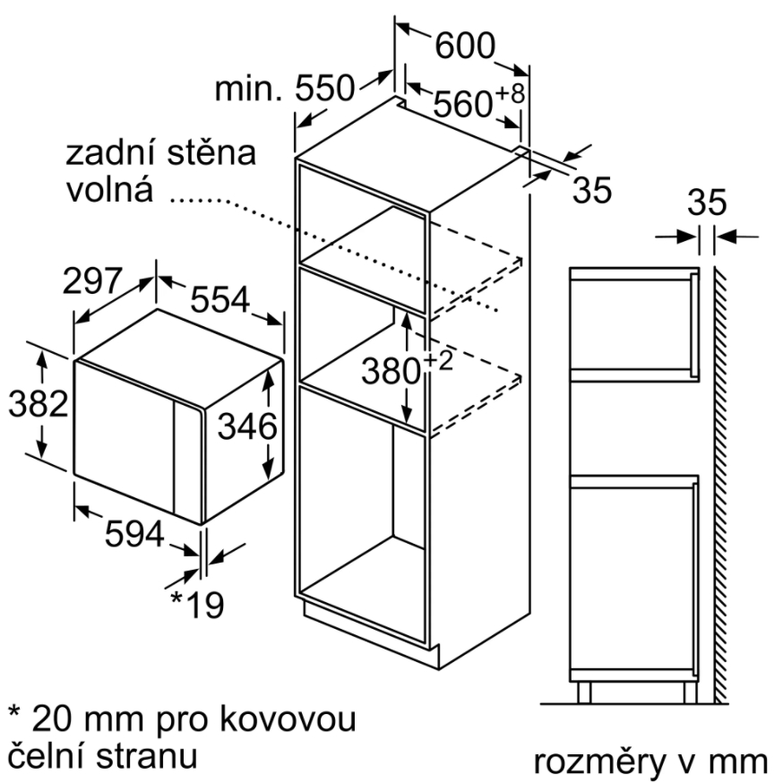 vestavný spotřebič do horní skříňky o šířce 60 cm s hloubkou min. 30 cm, pro vestavbu do vysoké skříňky o šířce 60 cm